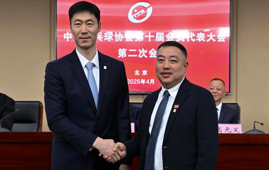 北京时间2025年4月23日,中国乒乓球协会第十届会员代表大会第二次会议在北京举行。会议审议通过刘国梁辞去中国乒协主席职务,选举王励勤为新任主席,高元义、马龙为副主席,完成届中领导班子调整。
