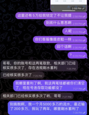 本人在开云一个月5000多万的流水,VIP等级9,因为电竞我没有接触过,刚开始打的时候,很多比赛下注都有限红,下注很少。陆陆续续下了2场大比赛之后就有盈利了,最后两场打完,问题就来了,我充值了8万元,赢了1场之后,就被平台卡款了,找了各种客服处理,说我账号有刷水套利的风险,把我账号给禁封了,直接黑款!!!垃圾开云体育!!!黑我血汗钱!!!