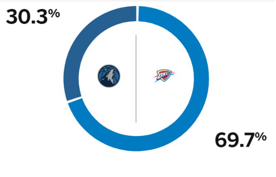 ESPN预测胜率:森林狼30.3%,雷霆69.7%